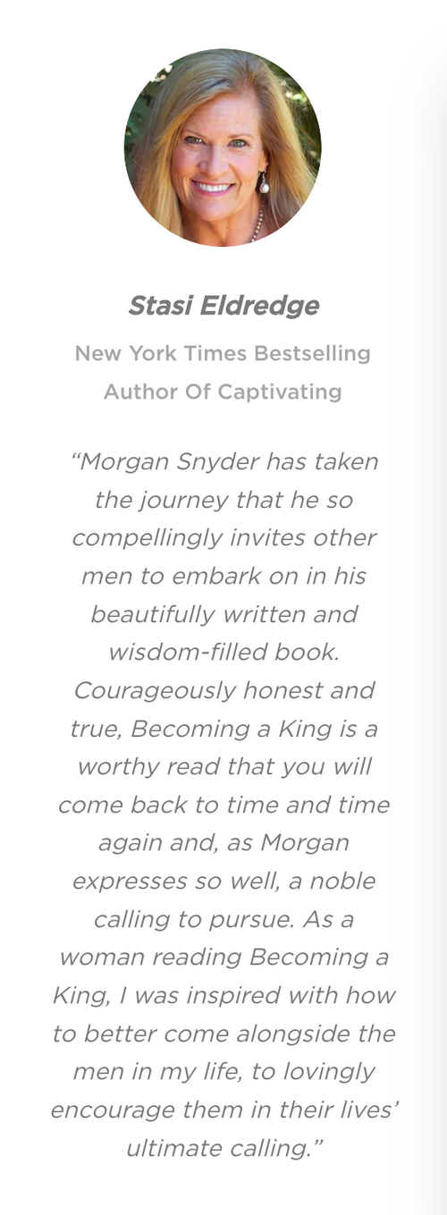 In Becoming a King, Morgan Snyder shares that when we take a deeper pass at the external problems around us, we begin to see the problems within our souls. Yet there is hope in an ancient path that leads men to become trustworthy kings.